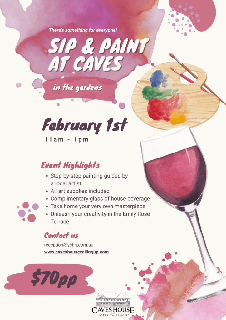 Join us at Caves House Hotel for a relaxed morning of painting, sipping, and enjoying the fresh garden air from the Emily Rose Terrace.